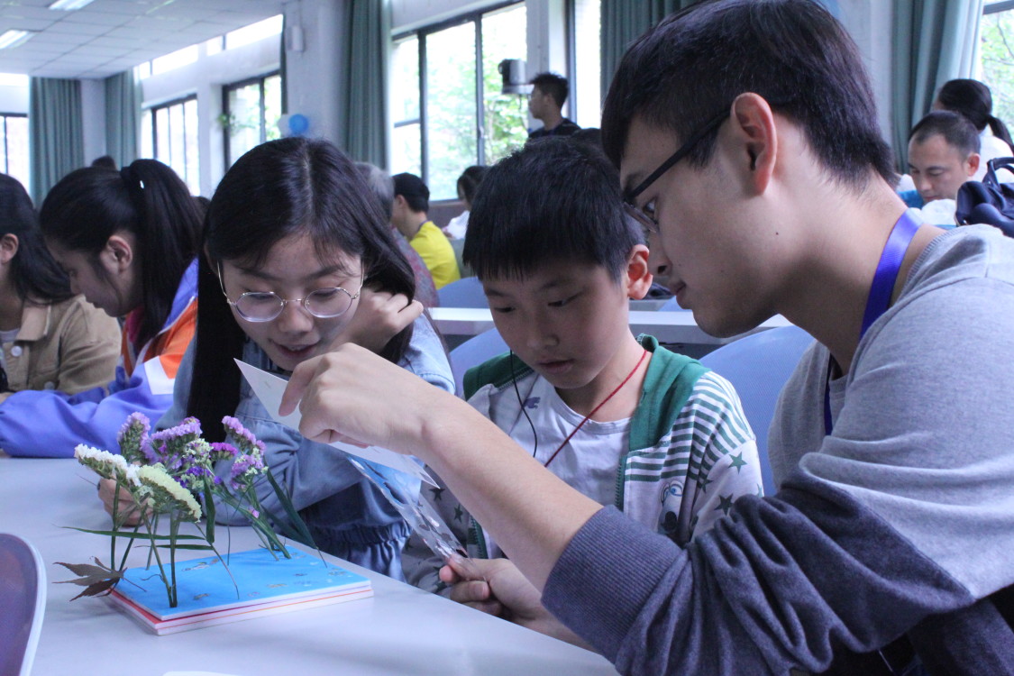 第一个活动为“用自己的小手创作” 。志愿者引导小朋友画出自己手的形状,并让其充分发挥想象力,绘制图画。在这个环节中志愿者们积极地与孩子们互动,对他们进行了初步的了解。第二个活动为“火柴搬运工”。这个活动要求志愿者与孩子们进行更为灵活的合作,志愿者帮助孩子们用塑料棍搭起了三角形或是小房子等简单的拼图,孩子们在思考中与志愿者变得更亲近。接着进行的活动为“美丽花卉设计”。志愿者引导孩子们按自己的想法进行插花的设计。有的孩子用之前的塑料棒打孔,也有的用胶带来贴花卉,他们专注而开心的样子令人印象深刻。孩子们制作出的插花成品富有创意,一展他们独特的想法。最后一项活动名为“快乐套圈”。志愿者和孩子们按照班级在教室外进行游戏。每个孩子都有六次套圈的机会,他们按照自己的方式将圈丢向目标,部分孩子丢得很准确,百发百中,得到了志愿者与家长们的夸赞。孩子们脸上都露出了开心的笑容,紧紧拉着志愿者的手,相互拥抱。