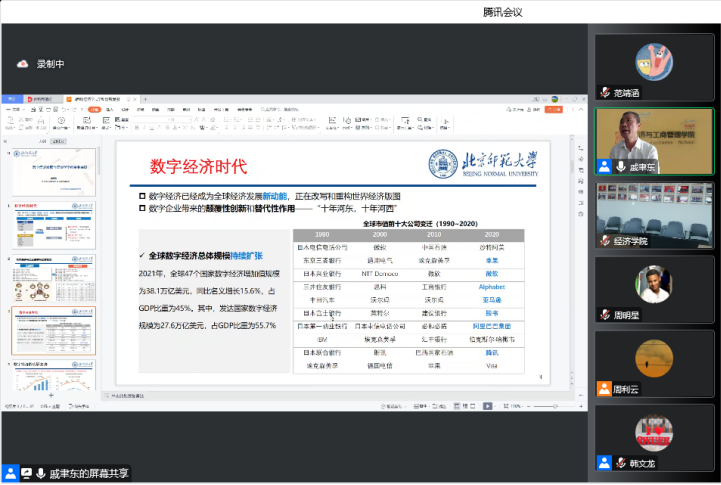 最后,戚教授指出,数字经济时代呈现出不同于工业经济时代的经济运行特征,需要经济学界与时俱进,抢抓研究机遇,谱写经济学学科建设新篇章,为经济学拔尖人才培养打下坚实的基础。ballBET贝博BB艾弗森副院长韩文龙教授做了总结发言。