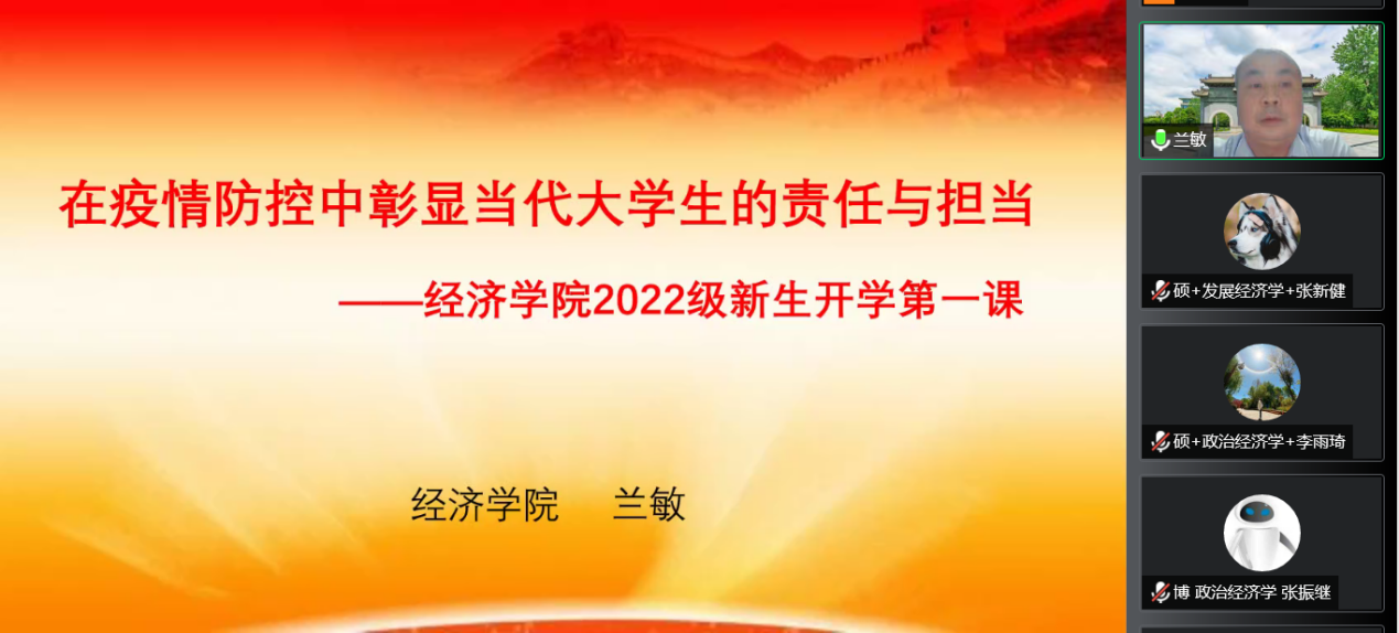 疫情防控是“国之大者”,同心抗疫是我们共同的责任。为深入贯彻习近平总书记关于“大思政课”的重要指示精神,落实立德树人根本任务,突出“思政大课”培根铸魂的重要作用,9月5日晚上,ballBET贝博BB艾弗森党委书记兰敏以《在疫情防控中彰显当代大学生的责任与担当》为主题,给学院2022级本科、硕士和博士新生讲授了一堂生动的思政大课。ballBET贝博BB艾弗森全体新生参加了此次学习。