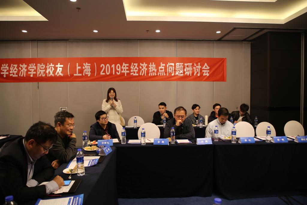 与会校友就2019年经济热点问题展开了主题分享。海华永泰律师事务所高级合伙人倪志刚校友首先对“数据驱动法律服务“进行主题分享,与大家交流了大数据在法律行业的落地应用;上海黄金交易所年四伍校友进行了“黄金市场的投资渠道与机遇”的主题分享,为大家讲解了黄金市场的形势与投资选择。西藏同信证券的赵明校友分享了对我国资本市场体制的一些看法;上海红松投资的杨帆校友分享了环保项目中的“国进民退”问题;上海国际信托的吴海波校友对信托行业的发展情况做了介绍;上海红土创投的蒋位校友对私募股权投资行业的形势做了分析;上海银商资讯有限公司的弋涛校友对支付行业的发展情况做了分享;平安证券的陈建兵校友对我国医疗健康领域的改革及公司治理结构做了介绍。