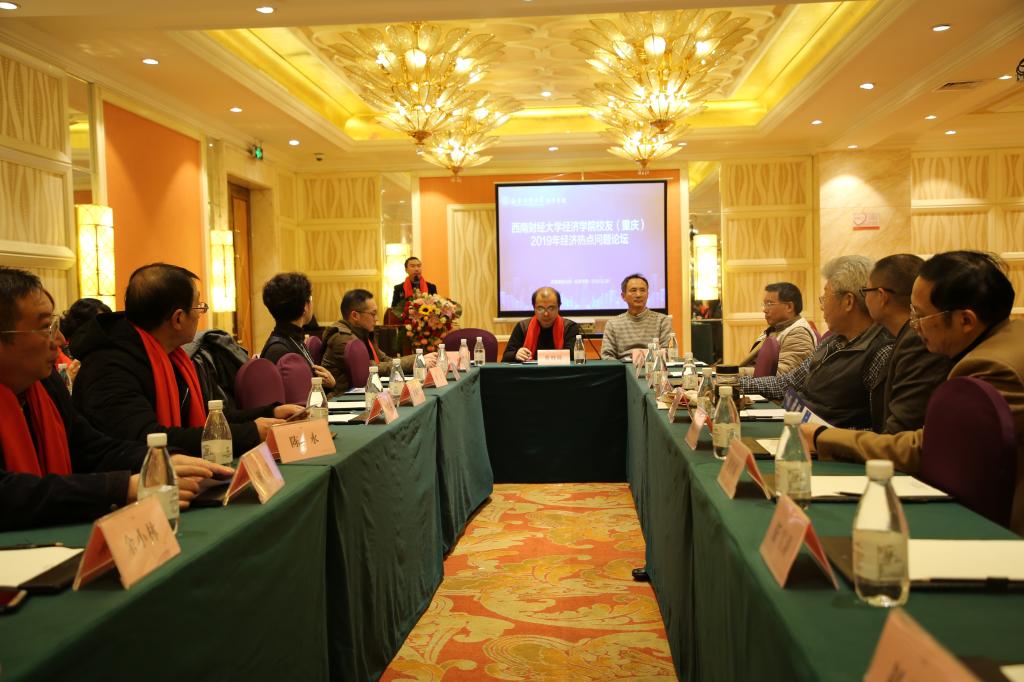 12月28日下午,ballBET贝博BB艾弗森校友会暨经济热点问题论坛在重庆江北区哈曼酒店召开,学院执行院长易敏利教授、教师代表方行明教授、蔡晓陈教授、袁正教授、李标副教授及学院相关工作人员、学生代表一行赴重庆,参与ballBET贝博BB艾弗森重庆校友举行经济热点问题论坛。学院重庆校友会会长余小林、副会长张义、副秘书长王琼、校友代表吴家农、詹承志、姚姜军等55人共同参与论坛。