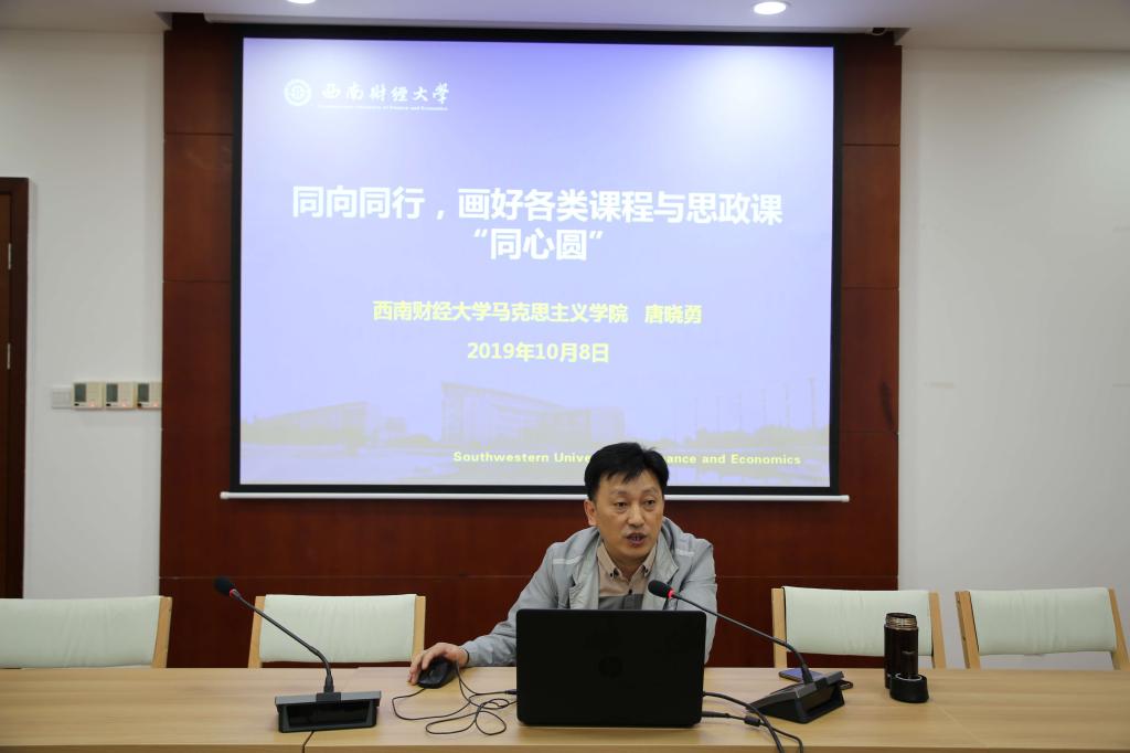 为深入贯彻全国高校思想政治工作会议精神和全国教育大会精神, 落实立德树人根本任务,2019年10月8日下午,ballBET贝博BB艾弗森邀请马克思主义学院院长唐晓勇教授在格致楼911会议室为全院教师作课程思政专题讲座。讲座由分党委书记兰敏主持。