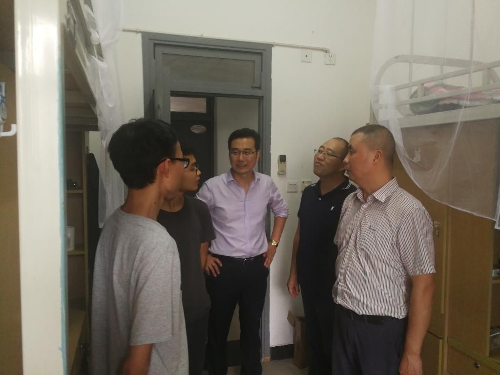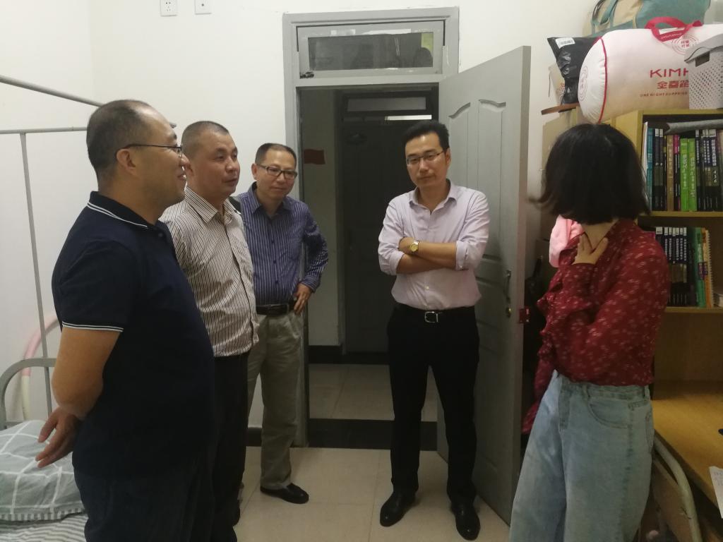 在新生寝室走访中,学院领导以及老师亲切询问新生的生活和学习状况,叮嘱新生注意用电安全问题,财产安全问题,谨防诈骗;鼓励同学们尽早适应学校环境,努力学好专业知识、掌握专业技能,做好研究生的学习计划和安排。当询问到学生本科专业的时候,跨专业考进我院的廖星同学表达了对课程学习的担忧,领导特别嘱咐需要加强对经济学基础知识的补充学习,并叮嘱本校同学要在学习和生活上积极主动帮助其他同学,使他们尽快适应环境。