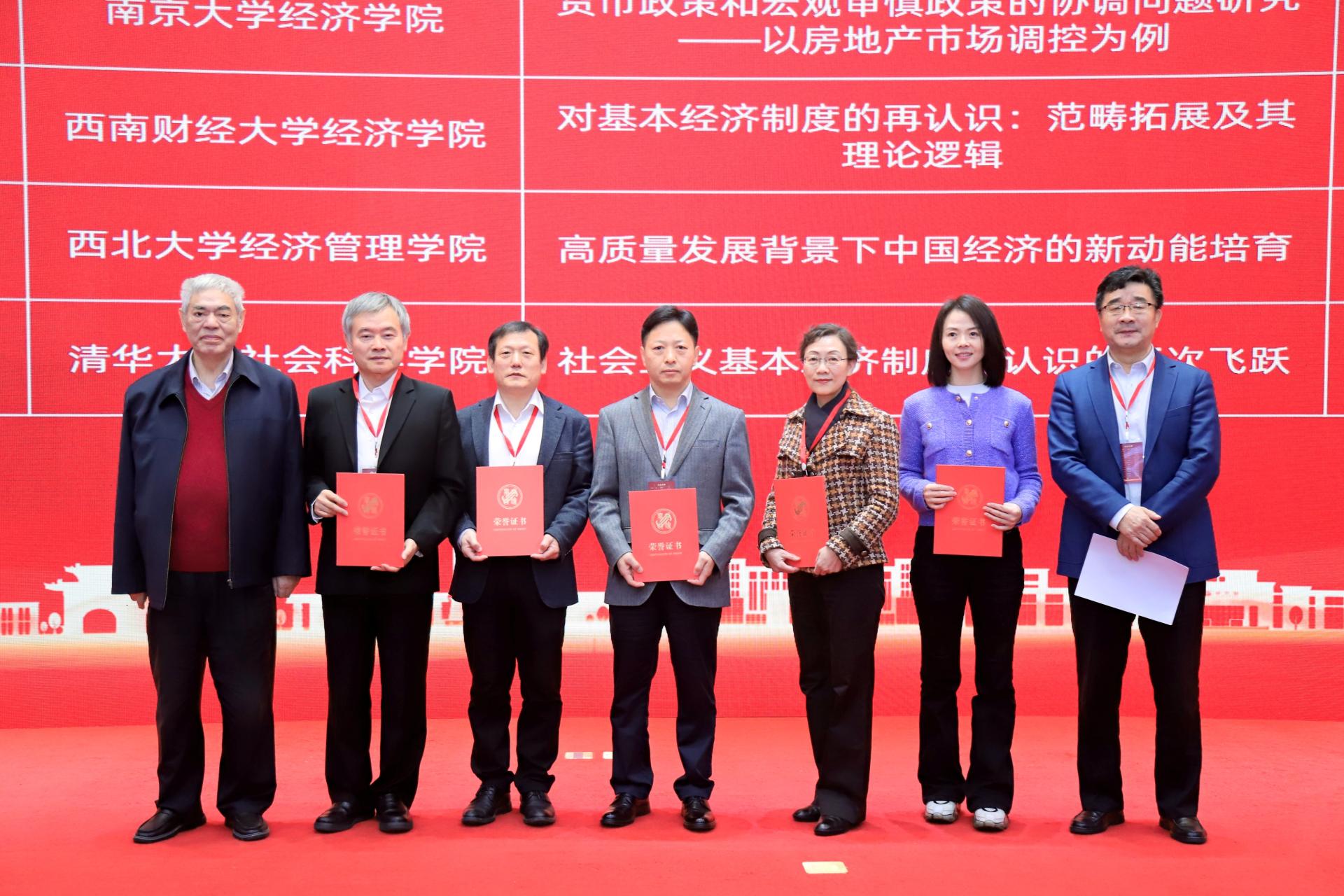 开幕式上还举办了第七届“兴华优秀论文奖”颁奖仪式。“兴华优秀论文奖”由“人民教育家”国家荣誉称号获得者、中国杰出的马克思主义经济学家和研讨会的主要创办者、组织者卫兴华教授创立,以激励学者们为创新发展中国特色社会主义政治经济学创作出更为厚重的精品力作,助力培养造就出一大批马克思主义经济理论家特别是中青年经济理论家。刘伟教授宣布了第七届“兴华优秀论文奖”共有五篇论文(9位学者)获奖,由洪银兴教授为获奖代表颁奖。