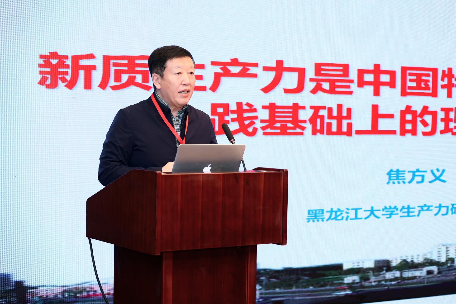 焦方义教授汇报的题目是“新质生产力是中国特色社会主义实践基础上的理论创新”,提出新质生产力的内涵具有一般性和特殊性、新质生产力的核心要素是科技革命和产业变革、新质生产力是中国特色社会主义实践基础上的理论创新、数字经济通过四个维度助力新质生产力形成等观点。