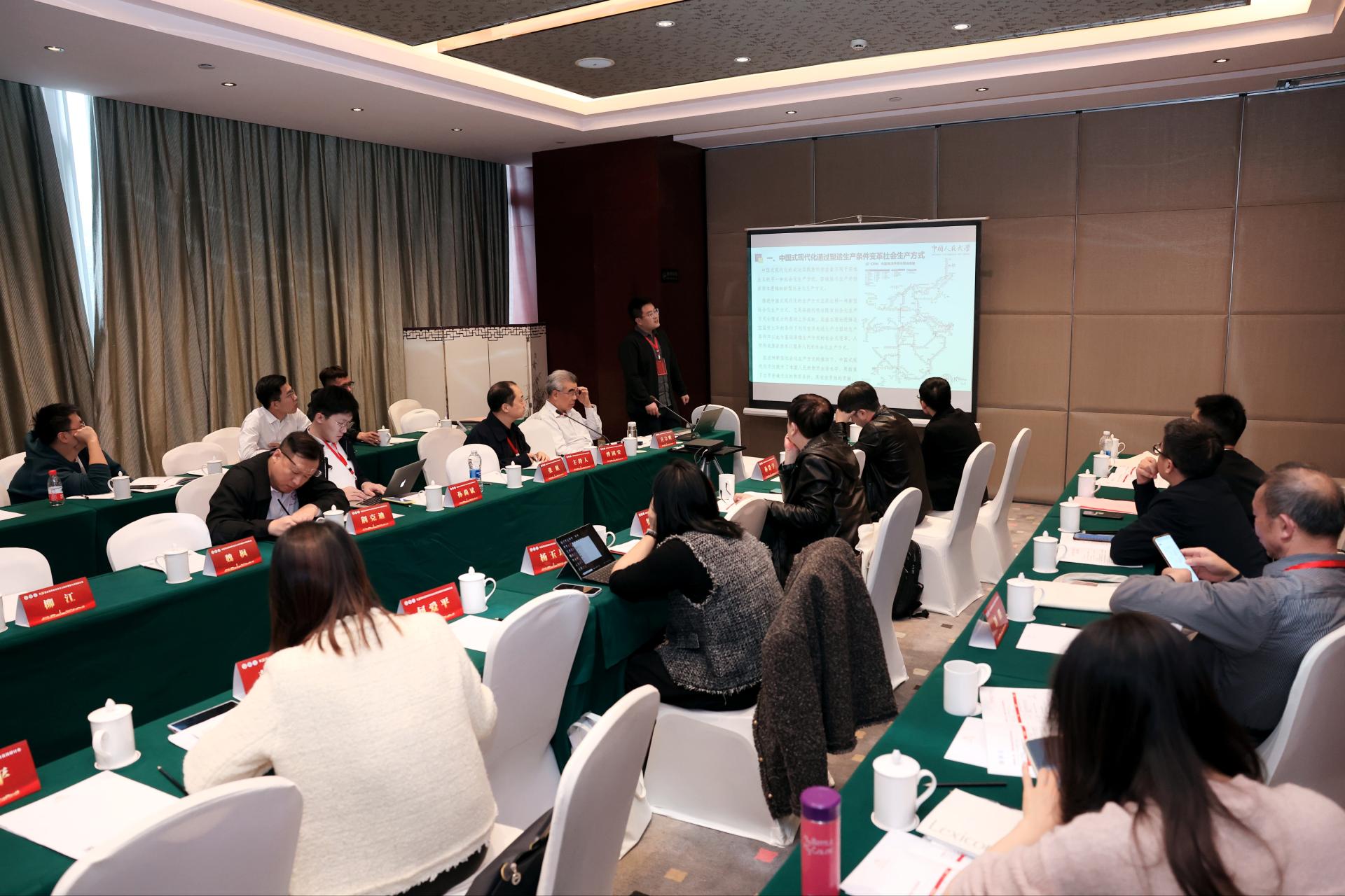 分论坛一围绕“习近平经济思想研究”展开讨论,10位专家学者的汇报涵盖了宏观经济、产业经济、数字经济、县域经济、共同富裕等方面内容。分论坛二围绕“中国式现代化的政治经济学研究”展开讨论,11位专家学者的汇报涵盖了生态文明建设、共同富裕推进,实体经济发展,国有企业布局优化、财政制度完善等方面。分论坛三围绕“构建新发展格局”进行讨论,9位专家学者就双循环新发展格局的理论逻辑、实践发展和现实任务以及东西部协作、乡村振兴、国有经济等领域做了精彩的发言与交流。分论坛四的专家学者围绕“构建中国经济学的自主知识体系”就中国式现代化的理论逻辑和实践的推动、共同富裕的目标、国有企业混合所有制改革等问题展开了热烈讨论与交流。分论坛五的9位专家学者围绕“构建高水平社会主义市场经济体制研究”这一主题,从当代资本主义和社会主义市场经济体制的根本区别、社会主义市场经济体制改革的内容、市场化改革带来的影响等方面进行了深入的互动与交流。分论坛六就“数字经济与实体经济融合发展研究”这一主题展开研讨,10名专家学者从数字经济赋能国有企业引领超大市场规模建设、数字资本主义价值来源、数字乡村建设、数字要素市场发展等方面展开了分享与交流。