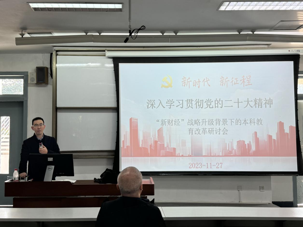 为深入学习贯彻《习近平新时代中国特色社会主义思想进课程教材指南》《“党的领导”相关内容进大中小学课程教材指南》政策要求,推动“新财经”战略背景下本科教育教学改革,ballBET贝博BB艾弗森于11月28日开展了本科教育改革及课程思政教学改革研讨会。研讨会由ballBET贝博BB艾弗森副院长韩文龙主持,学院全体教师参加。