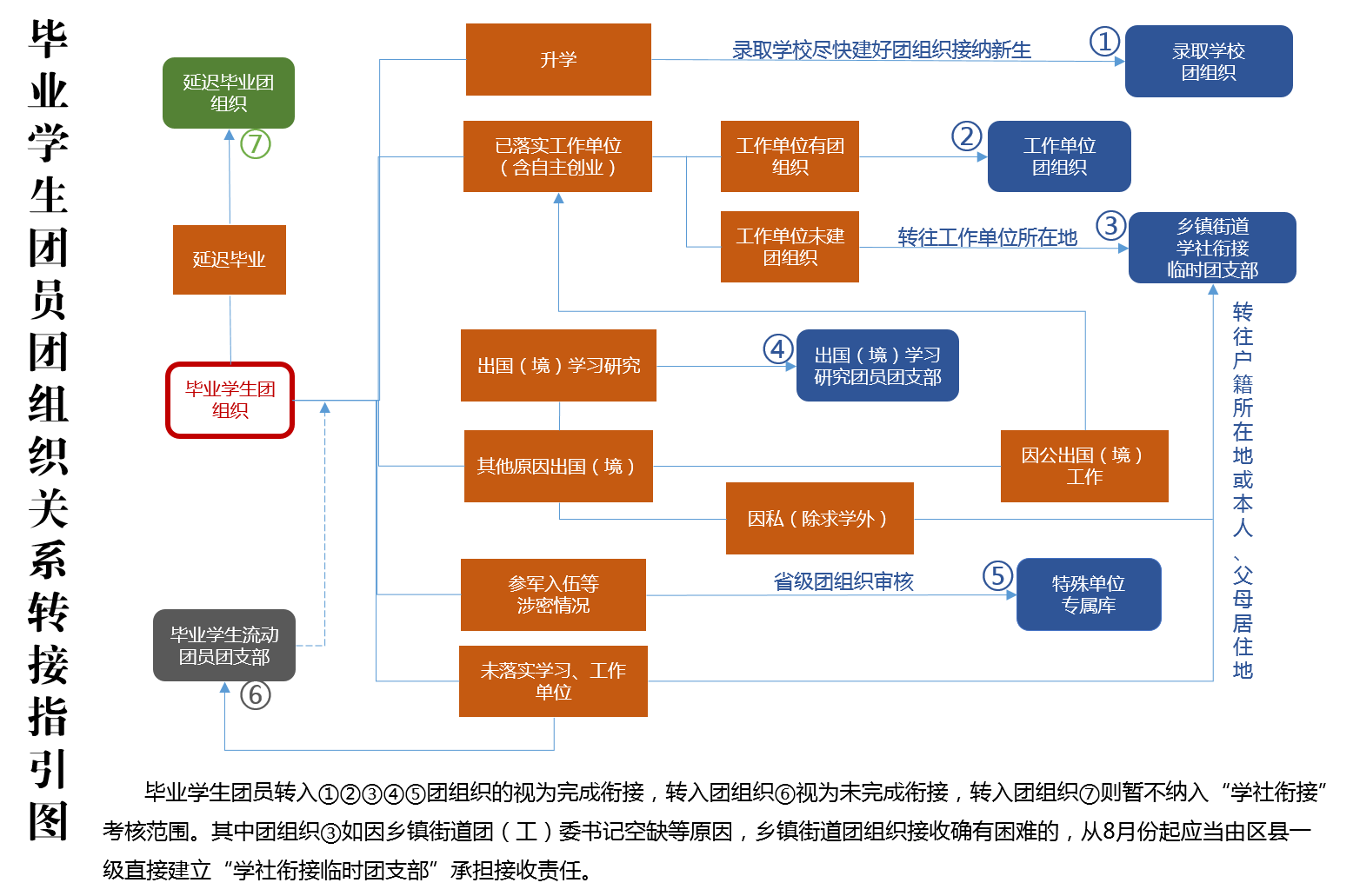 因就业单位无团组织,未就业等原因转至乡镇街道的毕业学生团员,通过“智慧团建”系统申请将团组织关系转接至工作单位所在乡镇街道团组织。