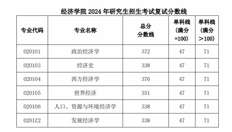 根据学校 2024 年硕士研究生招生考试考生进入复试基本成绩要求,结合我院学科专业特点和生源实际情况,经学院研究生招生工作领导小组研究决定,现公布我院各专业复试分数线: