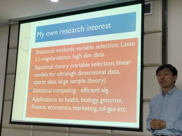 2018年5月7日下午,ballBET贝博BB艾弗森学术创新系列讲座第29期在格致楼918会议室成功举行。此次讲座邀请休斯顿大学数学系Wenjiang Fu教授作了题为“ Challenges in Age-Period-Cohort Models and Applications to Economics, Marketing and Health Research”的学术报告。讲座由徐舒教授主持,我院董朝华教授、刘定副教授、田超岳副教授和部分学生参与了此次讲座。