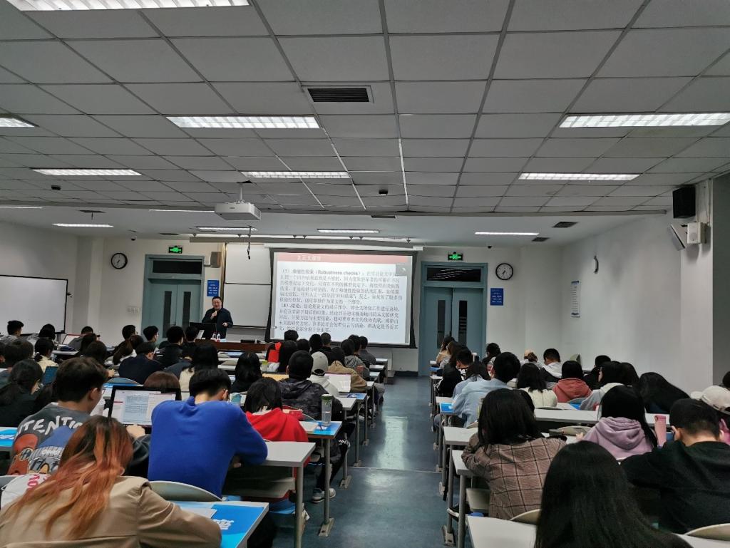 关于经济学论文写作,陈师教授主要从论文写作技巧、如何做实证研究以及方法论三个部分来进行详细地讲述。在论文写作方面,陈师教授重点讲解了文献综述的写作方法、特点、基本要求和作用,并详细介绍了文献检索方法,使同学们在论文写作方面受益匪浅。讲座的第二部分,陈师教授深刻讲述了如何做实证研究,在此部分,他对研究准备、选题、探索性研究、收集与整理数据、建立计量模型、解释回归结果等步骤以及实证研究的每一结构写作方法进行了具体阐述,这对同学们的论文写作具有极大帮助。最后,陈师教授基于米尔顿·弗里德曼实证经济的方法论特别阐释了实证经济学的概念,并在最后并向同学们抛出“经济学的假设是否真实?”的问题,他认为经济学的假设是否真实不重要,理论能用于现实,那它就是正确的。