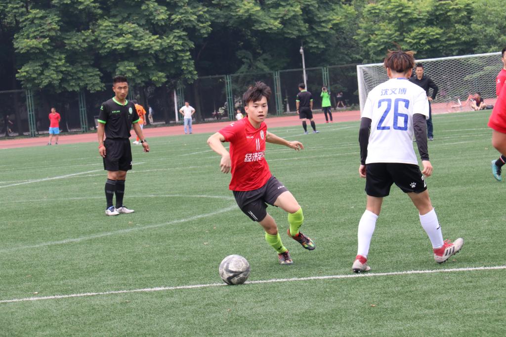首场比赛ballBET贝博BB艾弗森迎战公管学院。我方球员火力全开,连续取得了四粒进球,如愿取得了:4:0的开门红。第二场比赛的对手是实力强劲的会计学院,我院不幸以0:2落败于会计学院。第三场比赛对阵经外学院,我方球员做了充分的准备,开场不久就取得了一个关键进球,之后稳打稳扎,将胜利延续到了比赛的最后一秒,以1:0的比分获胜。