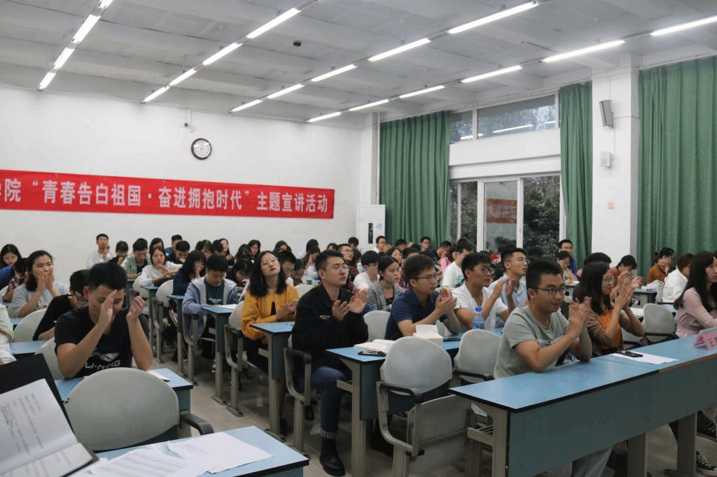 为隆重庆祝新中国成立70周年,深入学习贯彻习近平新时代中国特色社会主义思想,根据教育部党组相关部署,近日,学校党委启动开展“青春告白祖国”主题活动,为响应学校党委号召,学院成立学生宣讲团,开展“青春告白祖国 奋进拥抱时代”主题教育活动。9月15日晚,ballBET贝博BB艾弗森在颐德楼H302举办了“践行经世之道,勇担济民之责”社会实践经验分享宣讲活动。ballBET贝博BB艾弗森分党委副书记胡舒书记,分团委书记王芳老师,宣讲团成员杨玉霜、牟相等以及学院各年级学生代表参与了此次活动。
